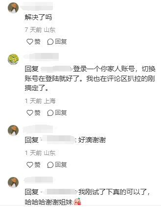 在小红书相关话题评论区看到有网友提供的解决方法,且有网友表示试过可行的方案。