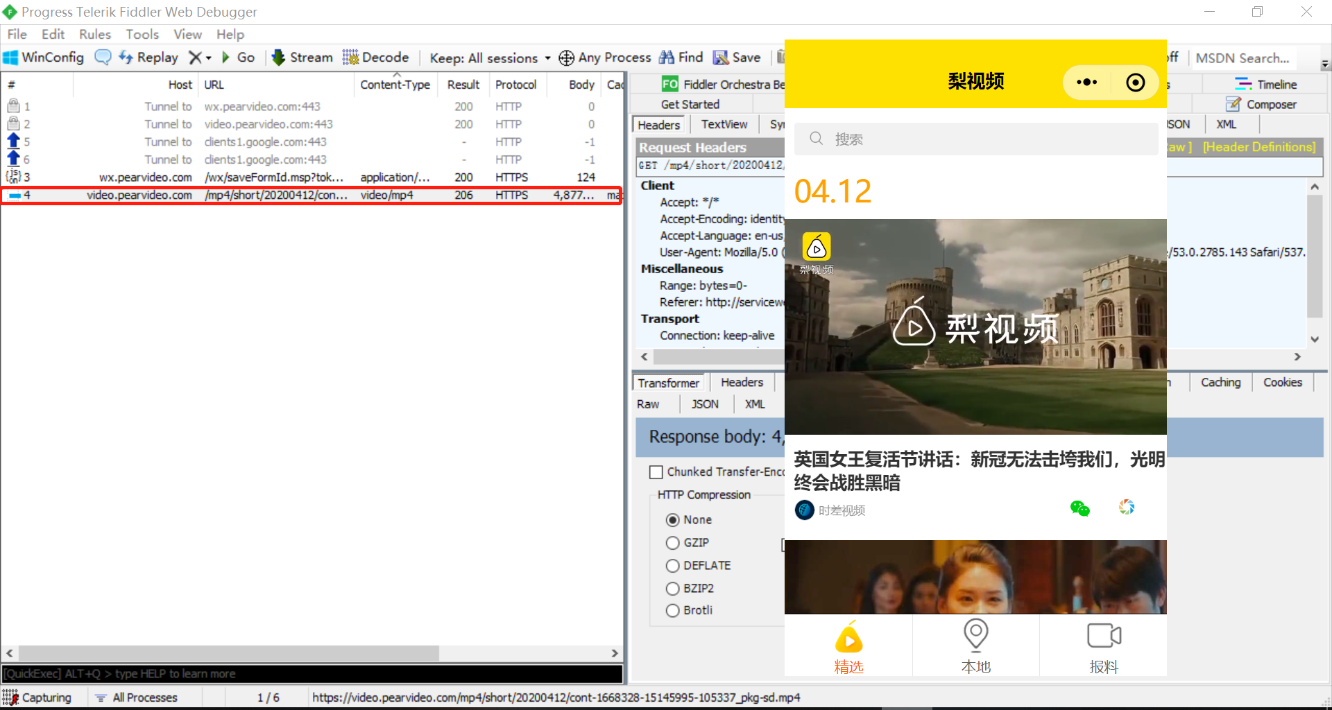 在做页面捕获的时候,不能开启代理,不然就不能进行抓包了,http/https协议的视频均可。