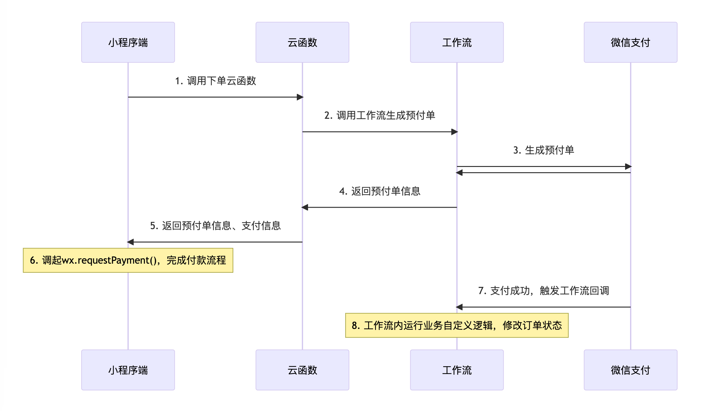 其中关于微信支付接口的对接需要单独开发,对于原云开发微信支付使用开发者来说,独立开发门槛如果太高,可以直接使用云开发最新的工作流解决这个问题,接下来具体的介绍相关的操作步骤