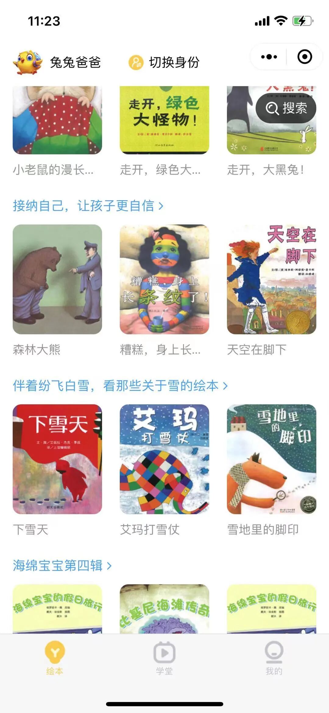 可以先在微信中搜索『球球绘本』小程序体验、查看、搜索绘本内容,如需要在自己的小程序中免费接入这些绘本,申请使用哟