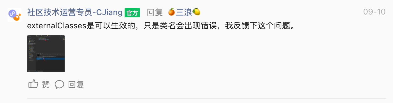 https://developers.weixin.qq.com/community/develop/doc/00002ae55d4ae87bf7d78dfe156c00?highLine=externalClasses%E5%A4%96%E9%83%A8%E6%A0%B7%E5%BC%8F%E7%B1%BB