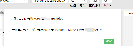 已经确认是小程序的后台,并且APPID和开发者工具提示的是一致,