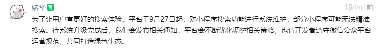 你好,就是我们的商城小程序为何之前可以在微信搜索到现在搜索不到了?