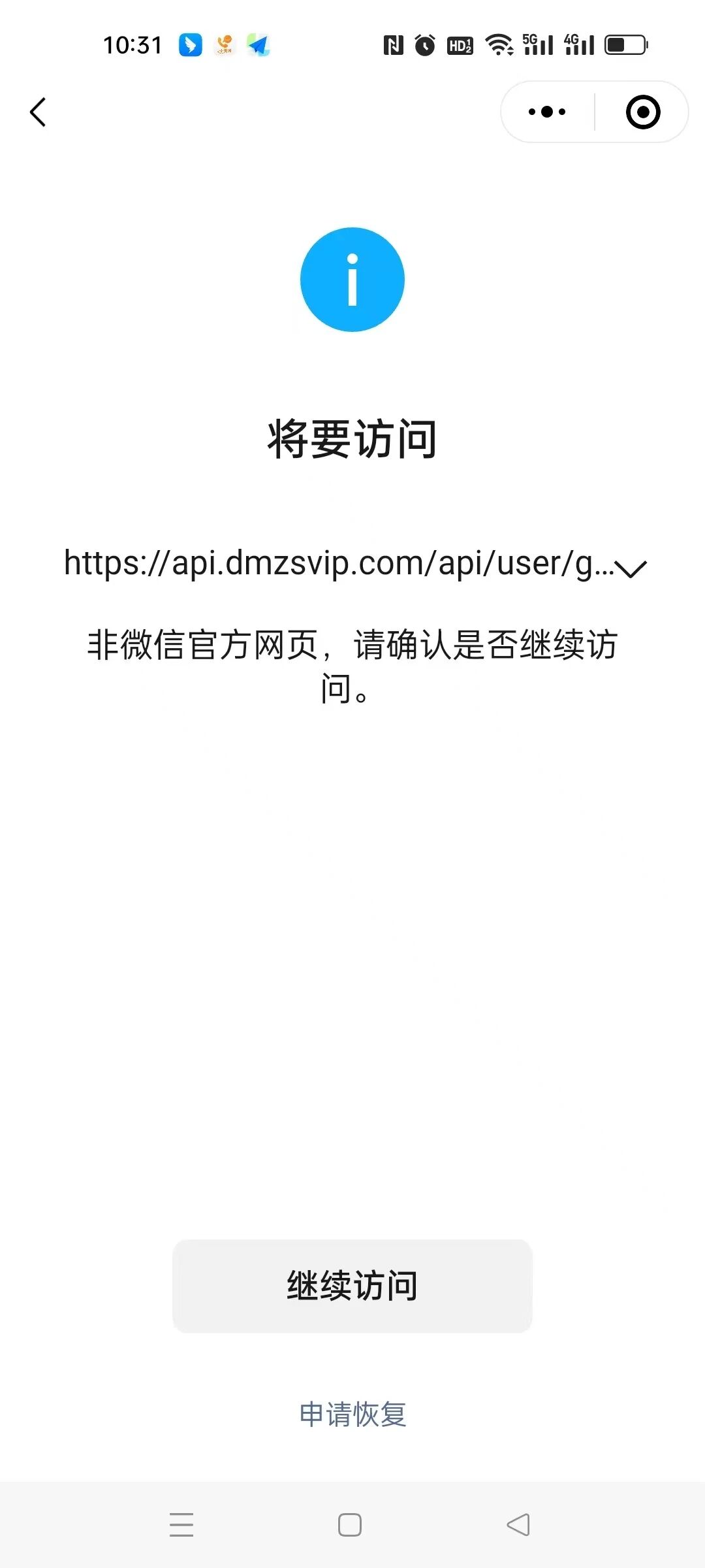 https://api.dmzsvip.com域名已经完成备案,公众号也已经配置,提示非微信官方页面,申请恢复网址访问,谢谢