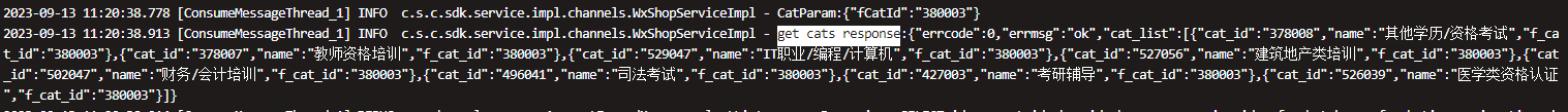 查询全部类目接口,获取到2339条类目信息,没有379009类目信息,其父id应为380003。获取子类目详情接口传入380003,也获取不到379009的类目信息。但是使用获取类目信息接口时可以查询到类目信息