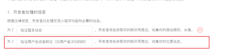 小程序代码中不调用这个位置权限接口(去掉所有相关的代码),上传代码提交审核,可以在提交代码审核页面更新隐私协议,去掉位置勾选,也可以等待代码审核通过发布上线后,再在设置中更新隐私协议。