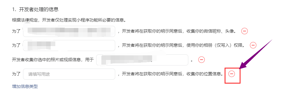 小程序后台位置权限已通过,我们现在想把这个位置信息关掉并且在用户隐私协议中不展示获取位置信息。如何关掉。