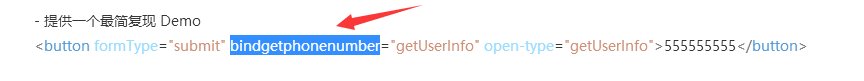 <button formType="submit" bindgetphonenumber="getUserInfo" open-type="getUserInfo">555555555</button>