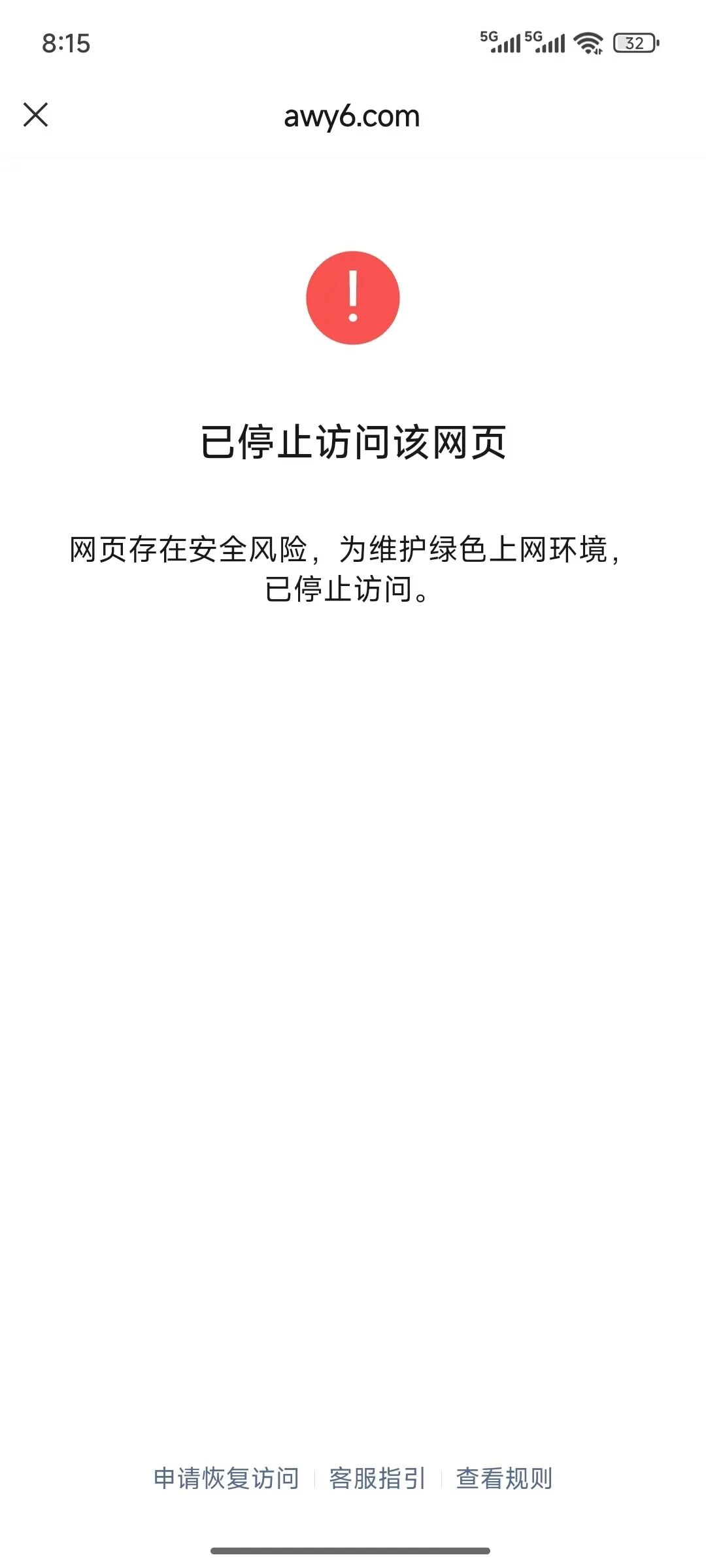 我们公众号运营的网站awy6.com无法打开了申诉好多天也没有结果 去检查了一下没有违规情况 请审核员指出违规链接好整改 谢谢