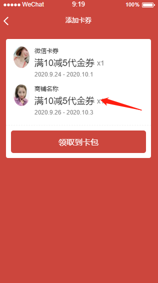 点击领取卡券后,然后去卡包看,发现只领取到了第二张卡券,第一张没有领取?各位大佬这是什么原因呢
