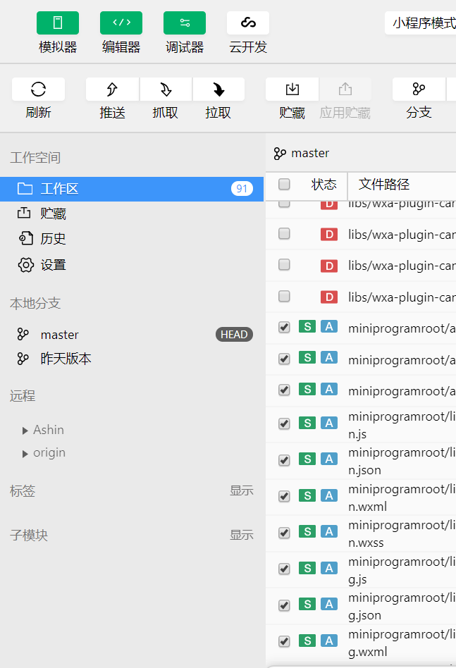 截图是小程序开发者工具?居然第一次看到支持 git 操作~