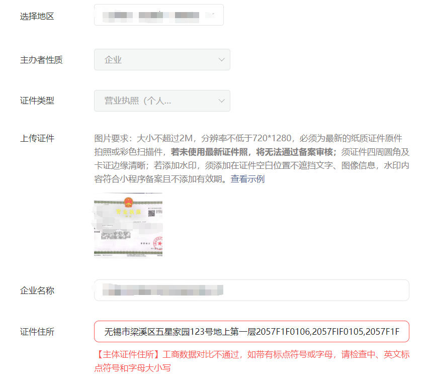 信息填写不一致