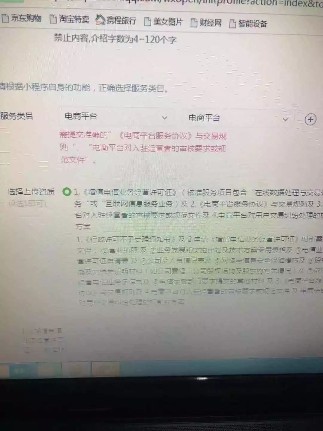 以前开通小程序时勾选电商平台类目只需要icp证,现在还要上传:《电商平台服务协议》与交易规则;电商平台对入驻经营者的审核要求或规范文件;电商平台对用户交易纠纷处理的机制或方案。怎么才是准确的,麻烦给个参考。