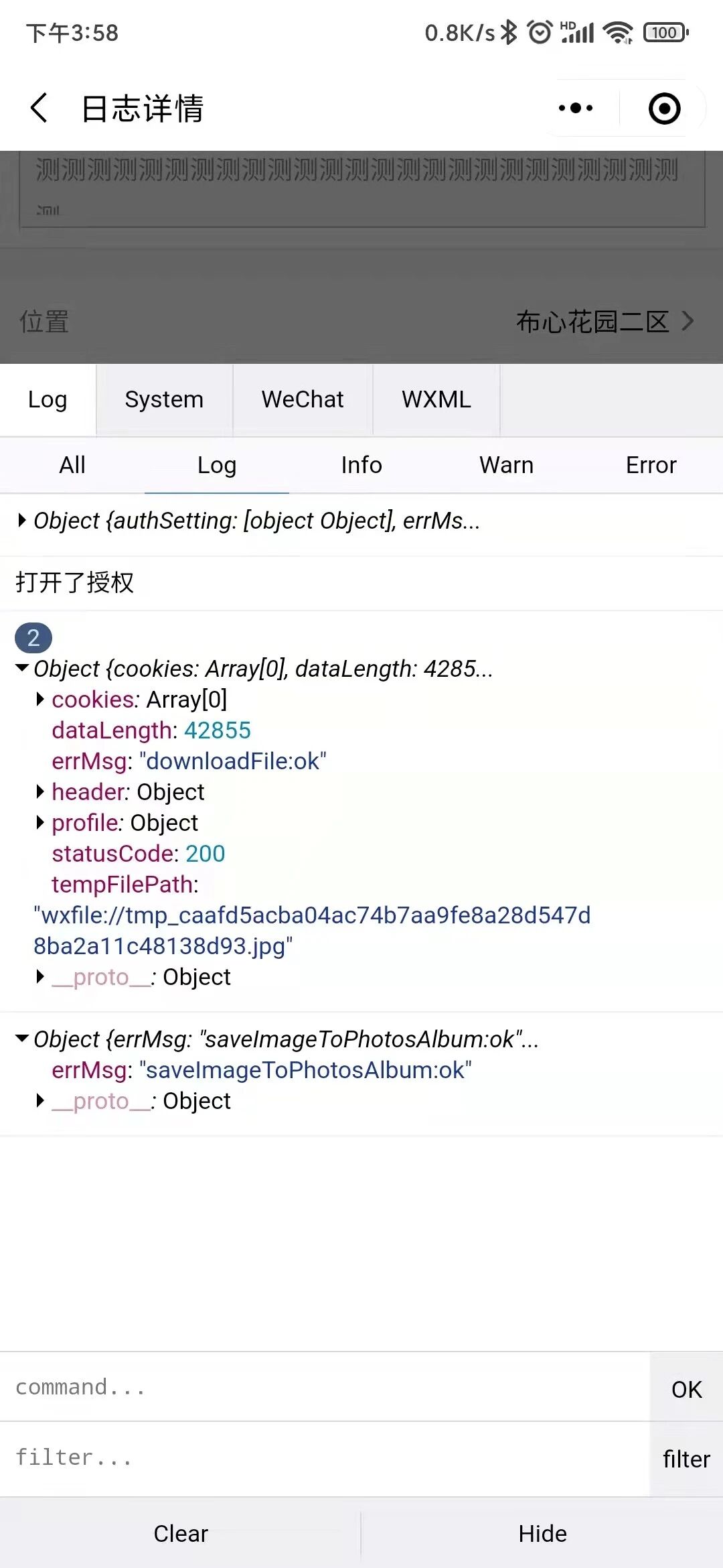 用这个方法打开手机上的调试模式:先打开预览版小程序——右上角胶囊更多——打开调试模式,再打开正式版小程序,此时会有console,你再保存一次图片,把报错发上来看看
