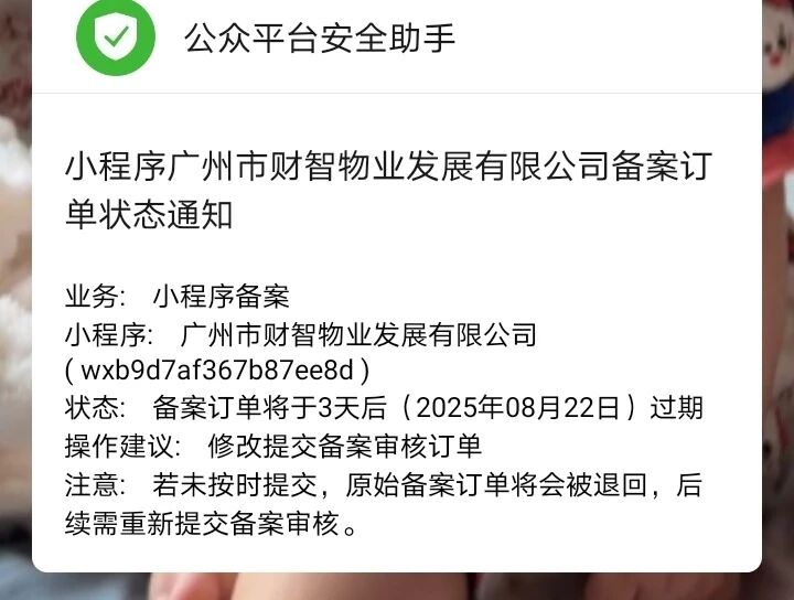 已经备案通过了,小程序也开始使用了,为什么会通知备案还要3天到期?需要填写信息,也没有端口填写呀,客服电话也没有