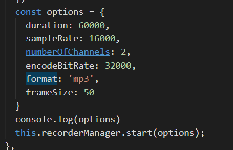const recorderManager = wx.getRecorderManager();const options = {duration: 60000,sampleRate: 16000,numberOfChannels: 2,encodeBitRate: 32000,format: 'mp3',frameSize: 50}recorderManager.start(options);的url是网络的 还是本地的 可以让我看看你那边播放url格式吗 谢谢!