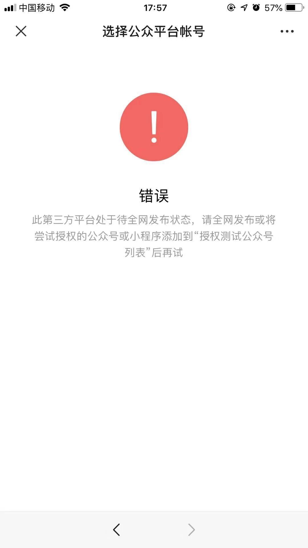 第三方平台授权未发布状态下,已经添加过测试号,但仍然无法测试,提示错误