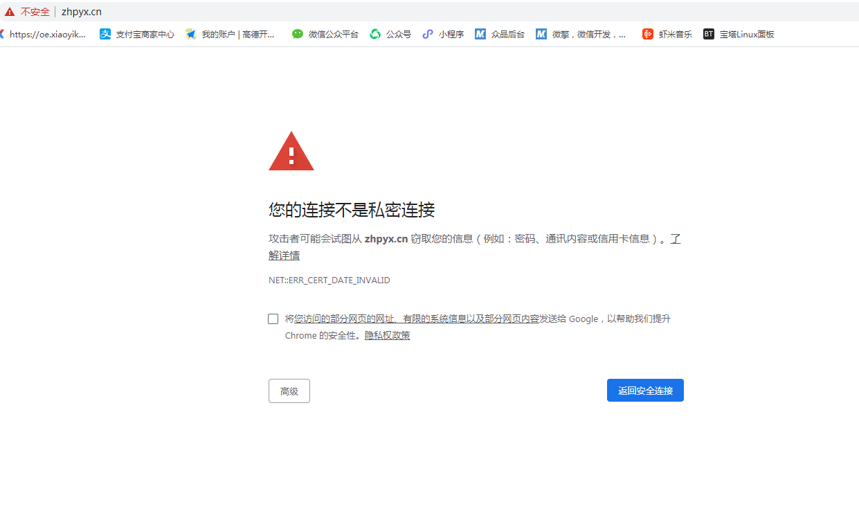 使用https登录显示连接不是私密链接,点击继续前往也能进入小程序后台,但应用端还是无法打开