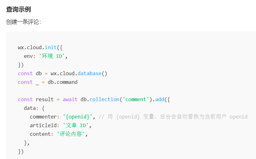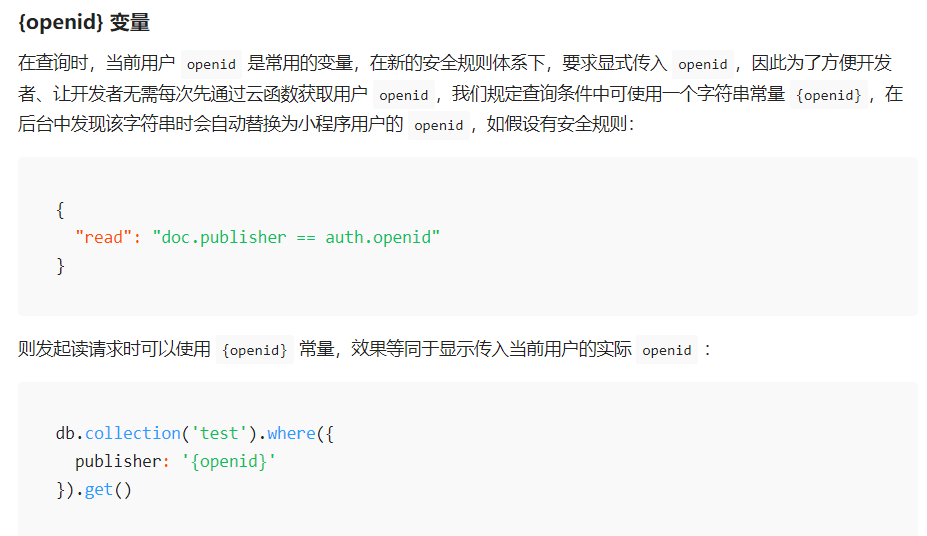 按照文档的说法,在db请求中使用{openid}字符串在实际请求中应该会被自动替换为当前用户openid,但在实际应用时被当作普通字符串处理了