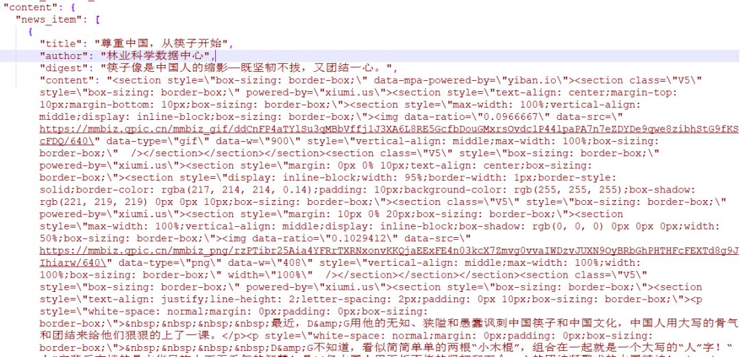 各位,截图为content的格式,请大家帮忙解答, 谢谢。content内容为微信公众号后台编辑的图文素材;