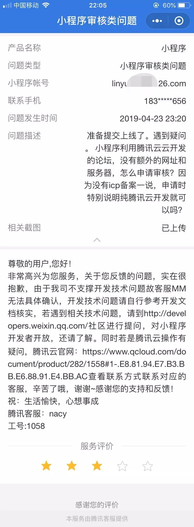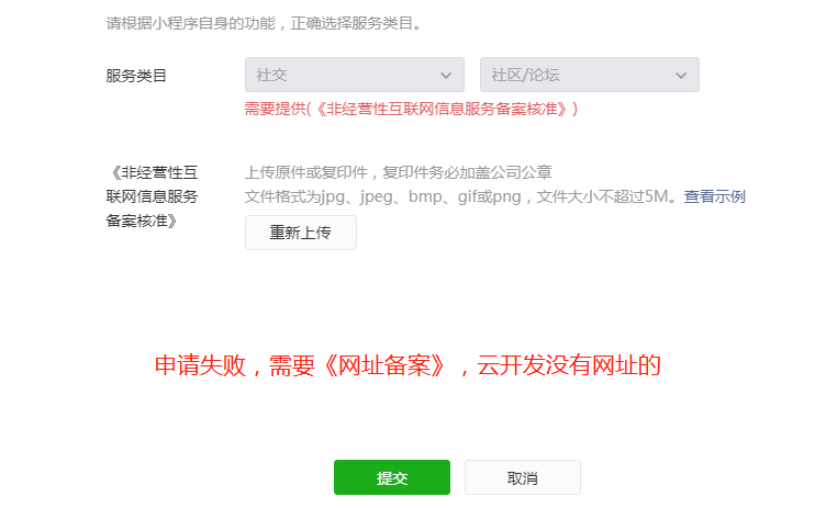 云开发的社区,因为没有网址,所以没有网址备案,在后台申请不了类目。