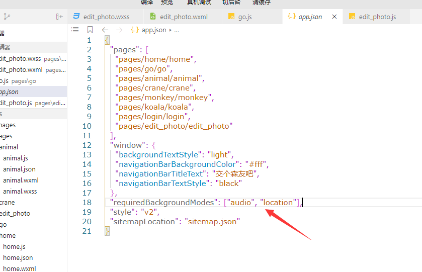 从微信客户端6.7.2版本开始,若需要在小程序切后台后继续播放音频,需要在 app.json 中配置 requiredBackgroundModes 属性。开发版和体验版上可以直接生效,正式版还需通过审核。