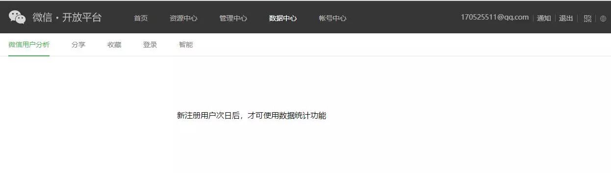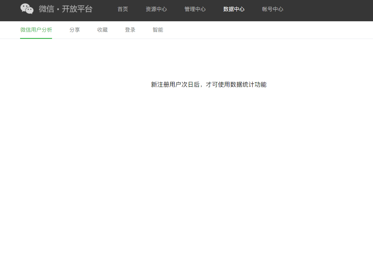 请问已经绑定了网站应用、公众号账号和小程序,为什么一直显示新注册用户次日后,才可使用数据统计功能?