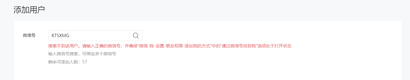 搜索不到该用户。请输入正确的微信号,并确保“微信-我-设置-朋友权限-添加我的方式”中的“通过微信号找到我”选项处于打开状态