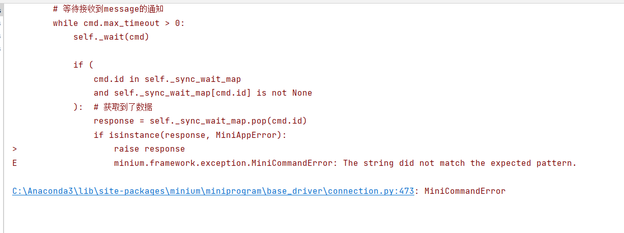 更新开发者工具到1.06.2412040,节点-右击-copy xpath被取消,只能采用selector方式进行定位,但是报错“minium.framework.exception.MiniCommandError: The string did not match the expected pattern.”