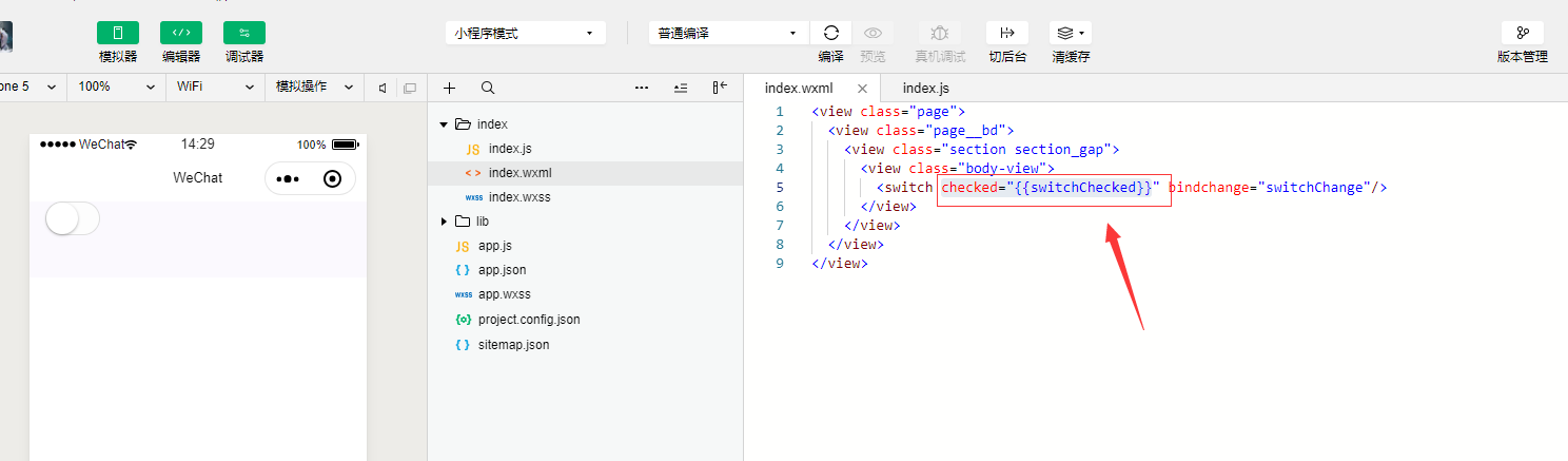 点击开关事件如此写:
