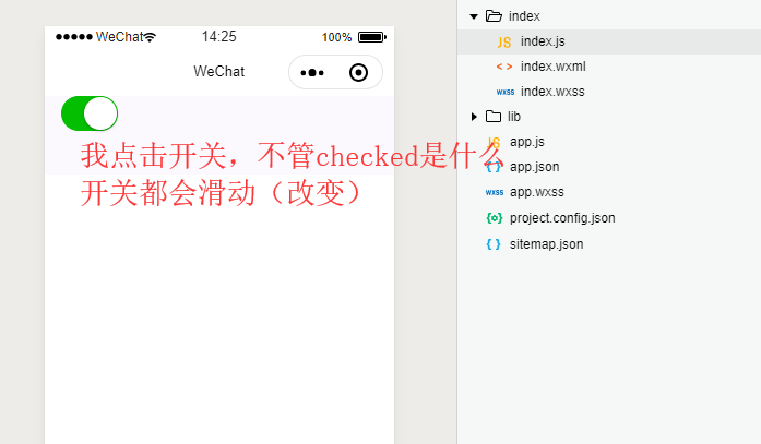 需求:点击开关,后台未传回成功标志,开关不滑动(改变)