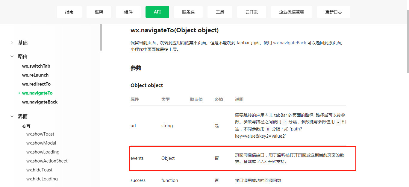 相关文档链接https://developers.weixin.qq.com/miniprogram/dev/api/route/wx.navigateTo.html