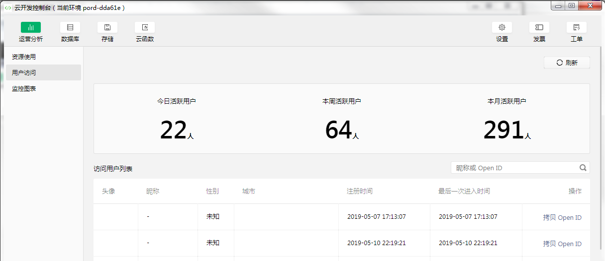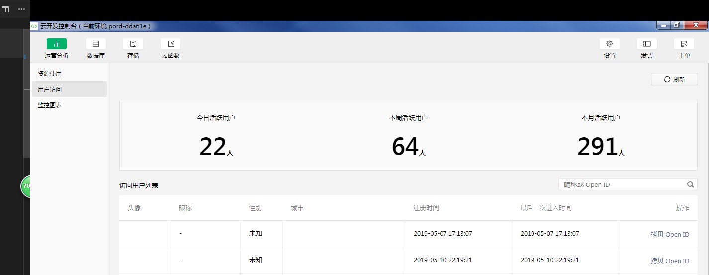 开发者工具云开发控制台,没有单独的插件的用户访问统计吗? 开发插件打开显示的是小程序的数据。