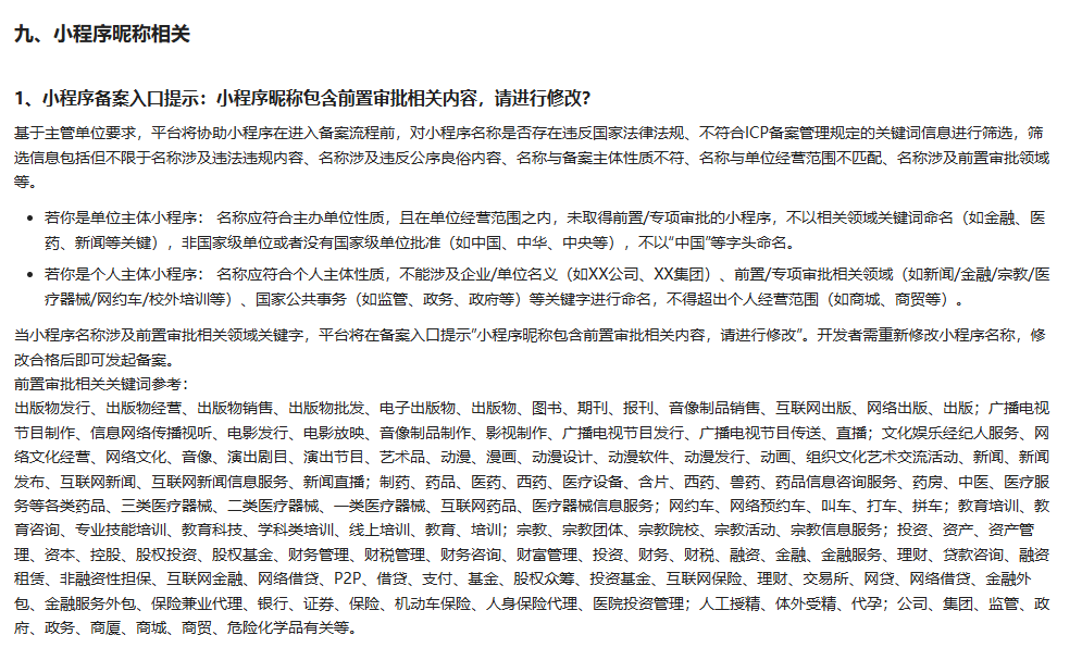 详情可参考:https://developers.weixin.qq.com/miniprogram/product/record/record_faq.html#%E4%B9%9D%E3%80%81%E5%B0%8F%E7%A8%8B%E5%BA%8F%E6%98%B5%E7%A7%B0%E7%9B%B8%E5%85%B3