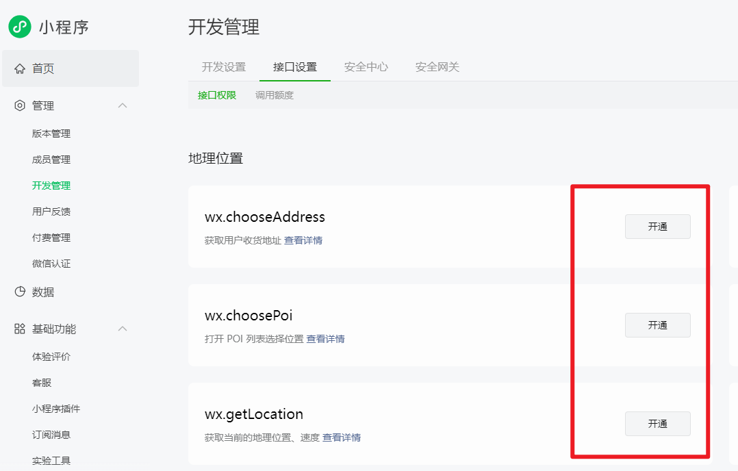 登陆小程序后台,查看申请位置接口的地方,状态是否改变了