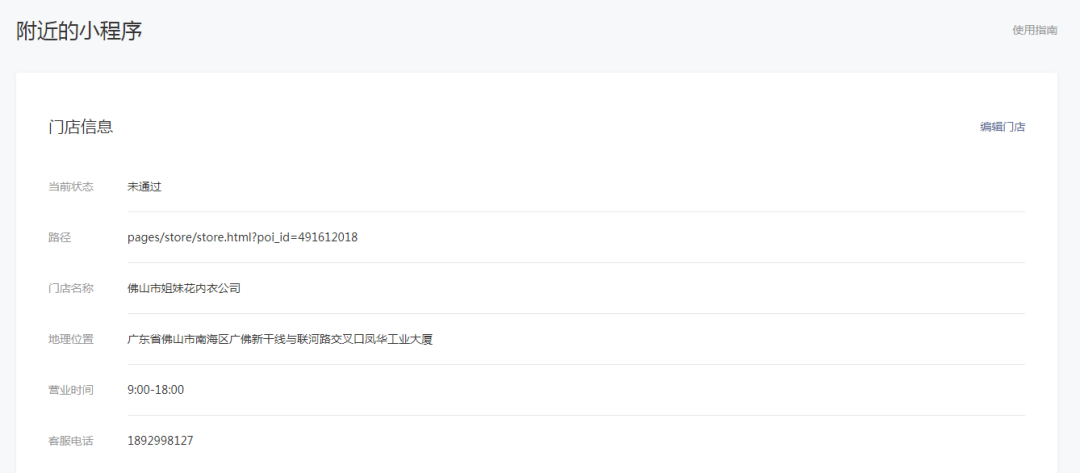 我的问题:该小程序已经发布成功,但是添加“附近小程序的门店管理”,仍然是未通过的说明(服务标签跳转内容与服务标签/门店服务内容不符),请问这个又是什么原因造成路径跳转内容为无效信息呢?
