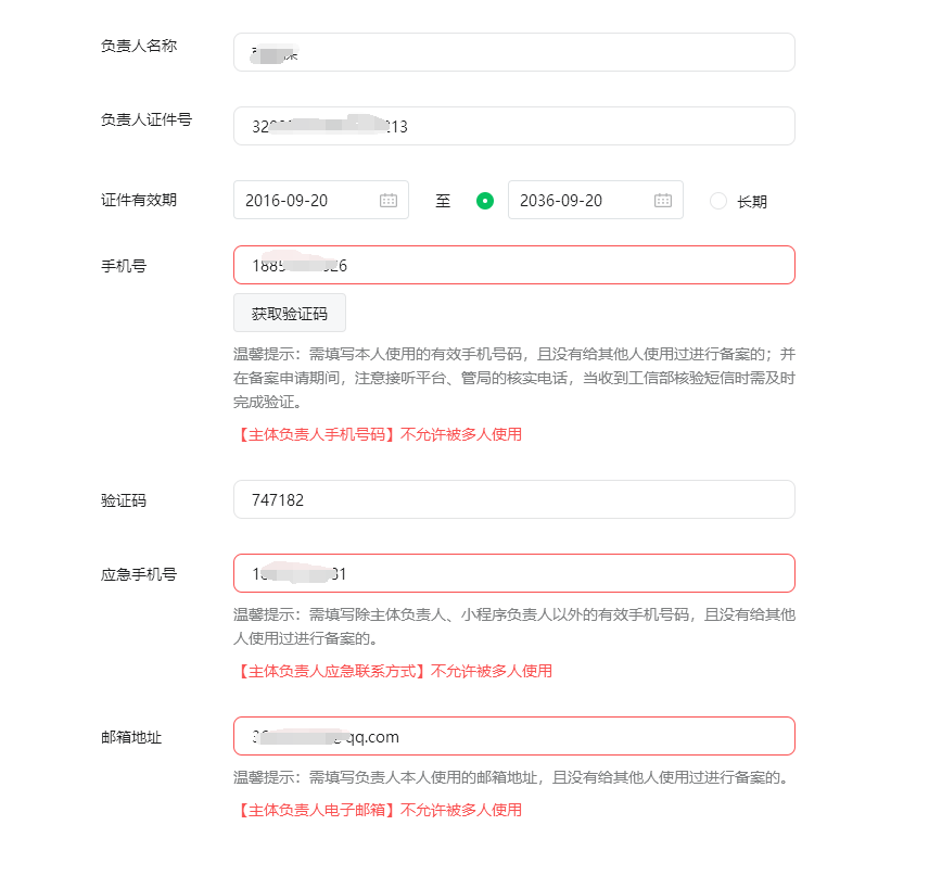 小程序备案,主体负责人信息这个,我们十几个小程序,主要负责都是一个人,怎么搞,主要是那个手机号,难道我们要搞几十个手机号来备案这十几个小程序码?