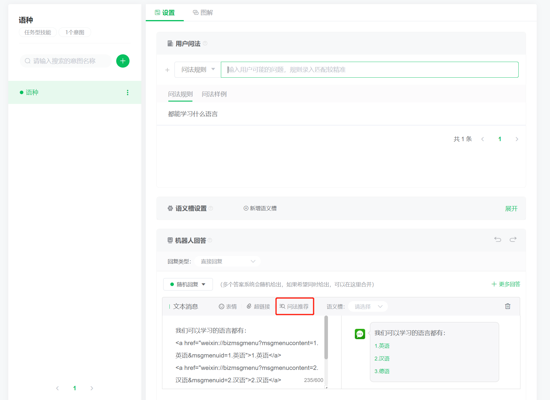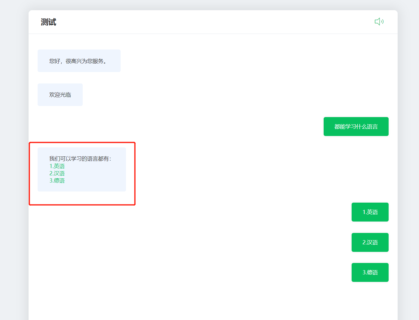 H5场景下,机器人答复的选项,比如有三个选项(1.英语,2.汉语,3.德语),目前是用户选择需要输入选项中的文字比如选择英语就要输入“英语”,如何实现用户直接点击上述选项。谢谢