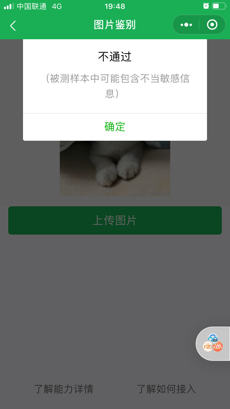 你好,在“珊瑚内容安全助手”测试你提供的猫咪图片都是可以通过的,不存在你说的未通过,可以具体说明是哪张图片没有检测通过,并提供下检测结果截图