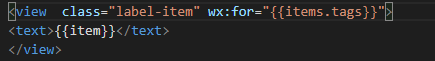 <view class="label-item"> <text wx:for="{{items.tags}}">{{item}}</text> </view>