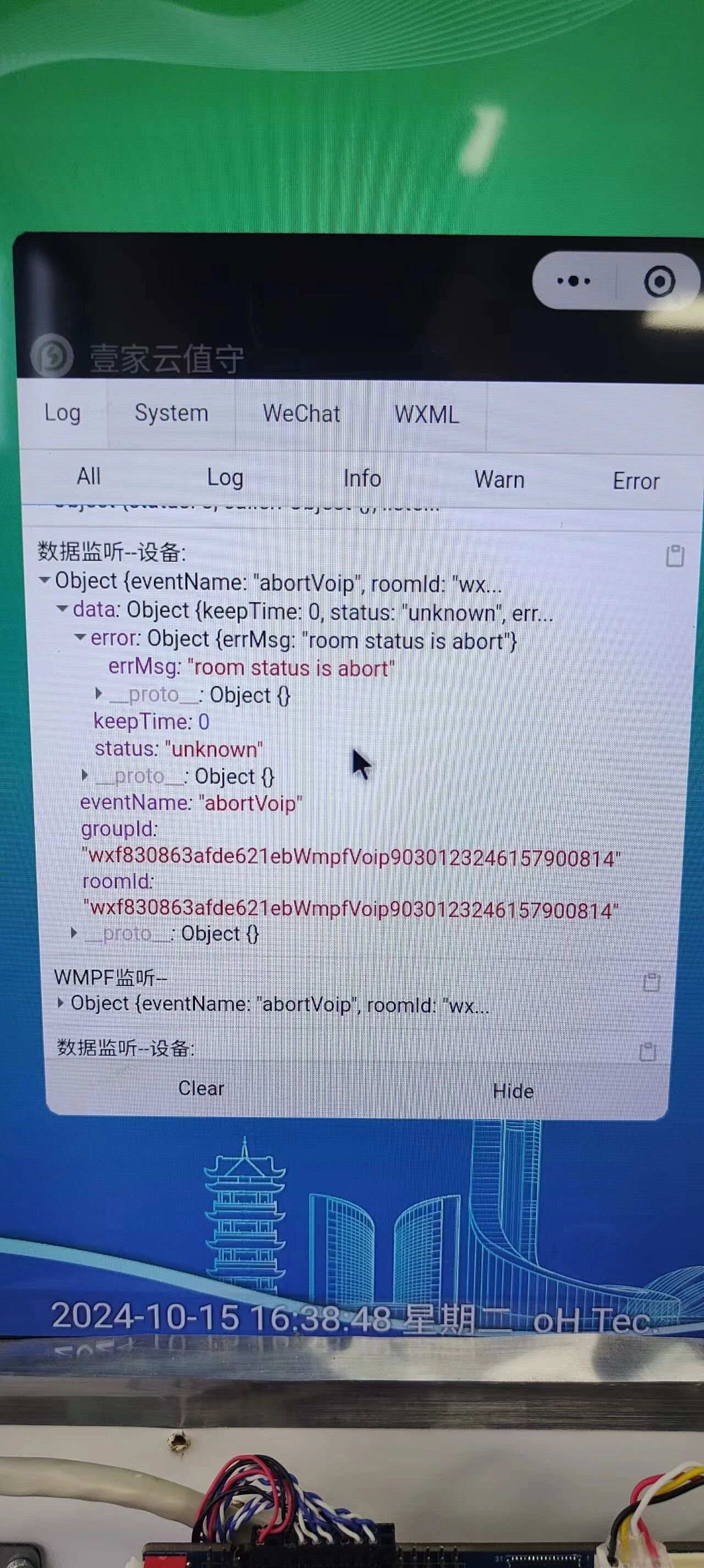 VOIP通话设备异常挂断监听错errMsg: "room status is abort",错误状态名称:abortVoip,设备能呼叫到微信手机,就是一直处于通话连接中,