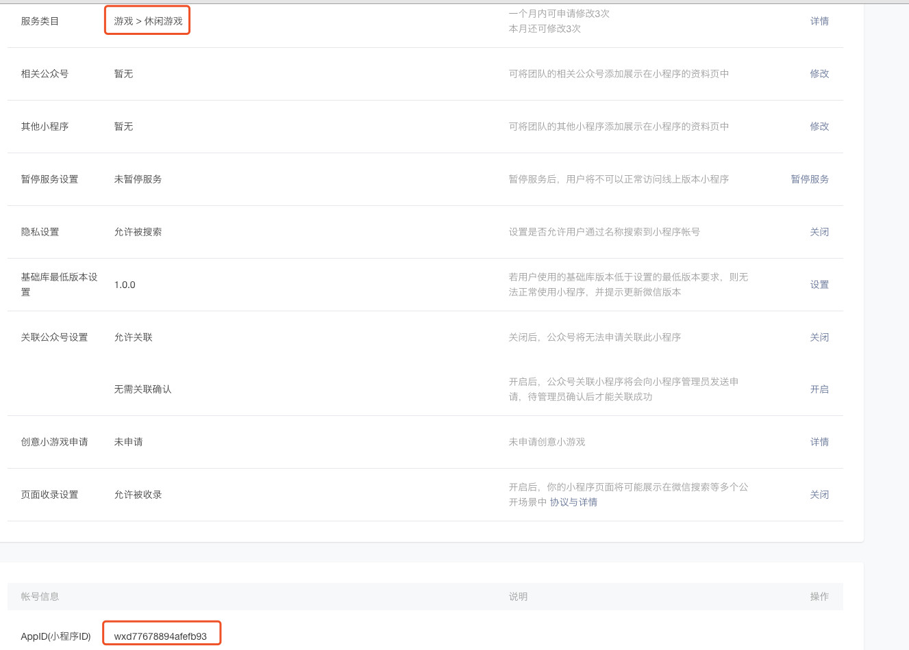麻烦提供一下小程序详情页面的截图(包括appid和服务类目)。