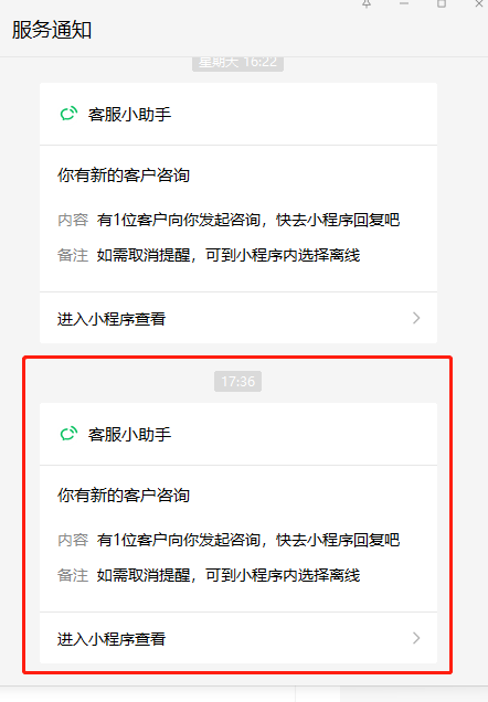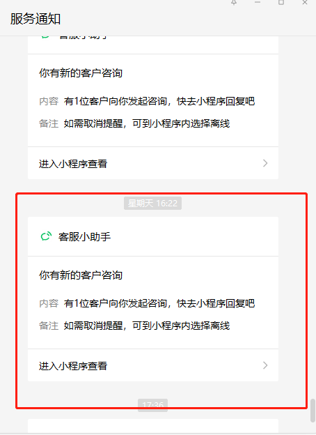 小程序客服功能 微信收到消息通知,点击进入详情,看不到消息。