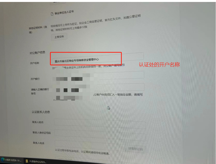 事业单位小程序需要注销,目前注销页面的开户行名称后缀包含(***)注释,跟法人证书一致。但实际上开户行名称并没有(***)注释,认证所用开户行也没有注释,请问如何修改在哪里修改注销所需的开户行名称。