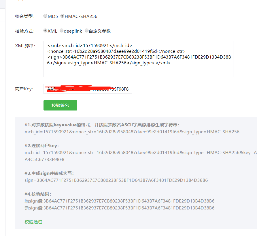 1、使用签名检查工具(https://pay.weixin.qq.com/wiki/doc/api/micropay.php?chapter=20_1)校验签名算法是否有误