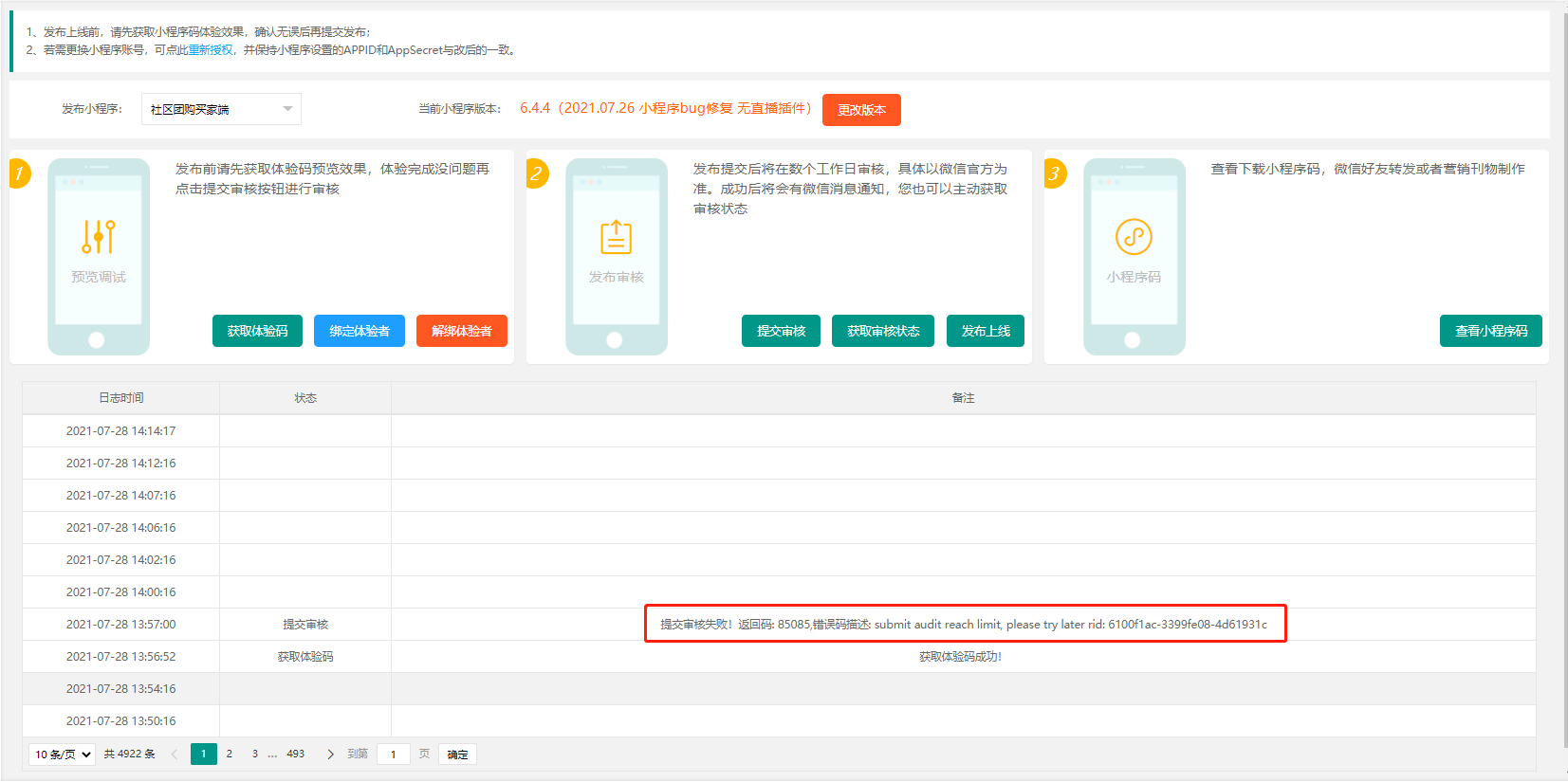 如果因业务发展需求quota不够使用的问题,请在服务商助手小程序-我的-审核管理专区自行申请提升临时额度。如有更多疑问,可通过“咨询反馈”入口联系人工客服进行反馈,客服值班时间为工作日9:00-12:00,14:00-18:00