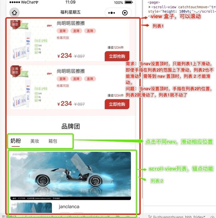 现在的问题是:nav还没置顶时,手指在scroll-view区域滑动,scroll-view就能滑动了,外层的view就不动了