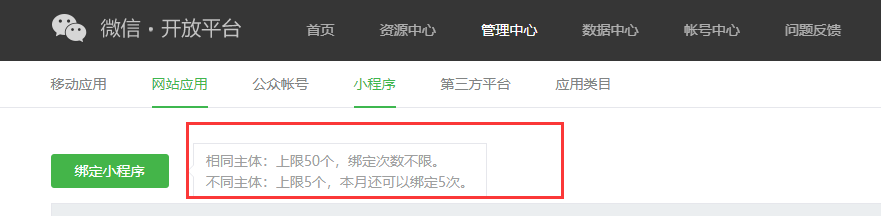 红框里面的话表示如果跟当前开放平台不同主体 只能另外五个不同主体的小程序吗?