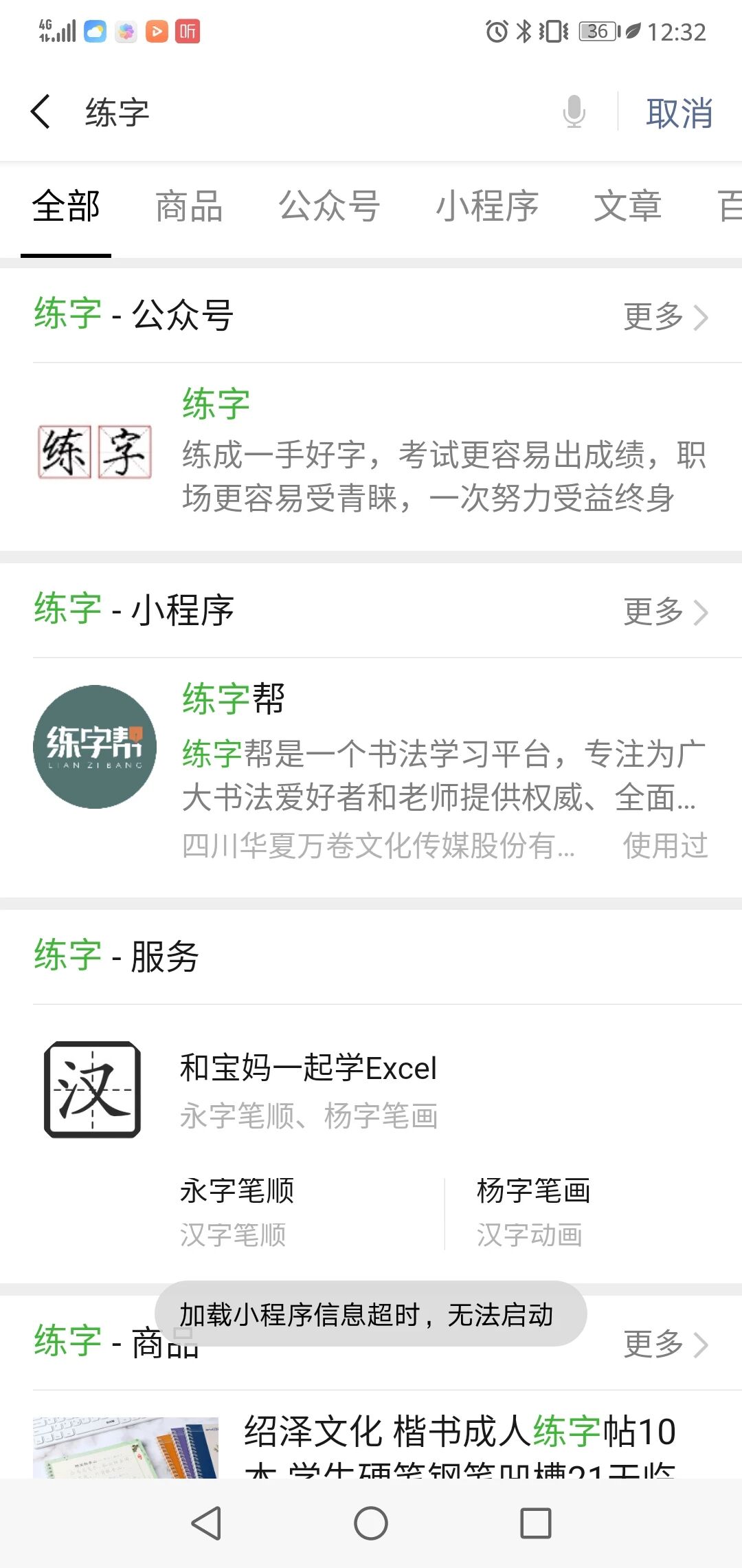 搜索页面搜索到小程序,点击报加载小程序信息超时无法启动。