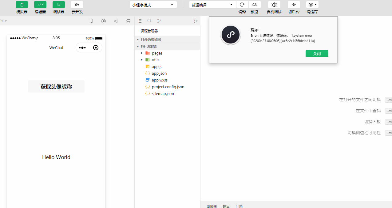 使用微信开发工具上传不了,提示系统错误,使用相同的appId,创建空白项目上传问题一样,急需救助!